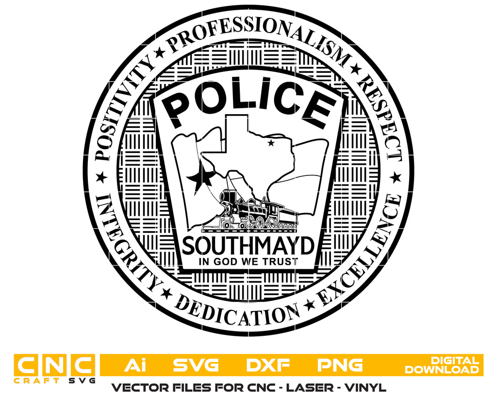Perfect for engravers, designers, and collectors, this Southmayd Police Department logo ensures smooth curves, accurate detailing, and professional results for both print and digital applications.