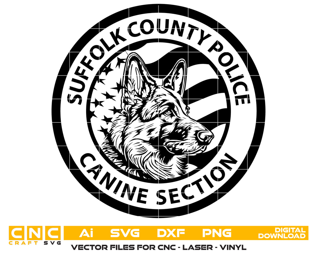 Honor the dedication, discipline, and service of K-9 law enforcement teams with this Suffolk County Police Canine Section Logo SVG — a clean, high-quality vector design perfect for crafting, engraving, printing, and tribute artwork.