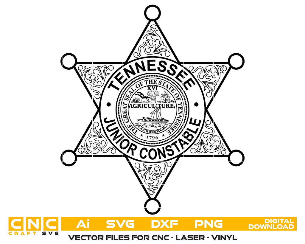 Show pride with this Tennessee Police Junior Constable Badge SVG. Expertly designed in scalable vector format, this official law enforcement badge design is perfect for CNC cutting, laser engraving, vinyl decals, apparel printing, plaques, signage, and woodworking projects. With sharp detailing and clean vector lines, it ensures professional-quality results on wood, acrylic, fabric, or metal. Ideal for junior constable memorabilia, police plaques, department signage, collectible décor, and custom gifts. Fully compatible with Cricut, Silhouette, CNC machines, and laser engravers, this Tennessee Police Badge design is available for instant download.