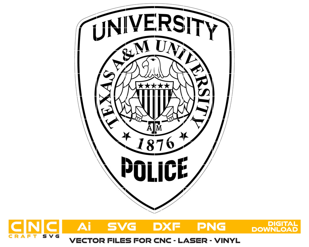 Showcase pride and professionalism with this Texas A&M University Police Department Logo SVG — a crisp, high-quality vector design perfect for crafting, printing, engraving, and tribute artwork.
