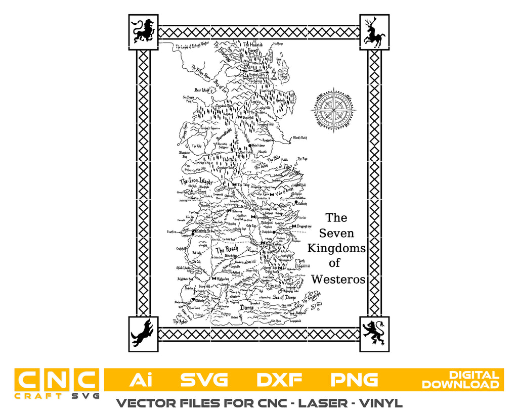 Bring the legendary world of Westeros to your creative projects with this Seven Kingdoms Seal Vector File. Designed with clean lines and great detail, this fantasy-inspired emblem is perfect for laser engraving, CNC cutting, vinyl projects, printing, crafting, and digital design work.