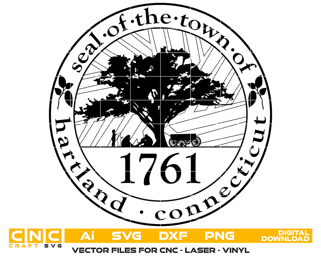Capture the official identity of Hartland with this Town Seal SVG, perfect for municipal displays, documents, and collectible projects. This highly detailed vector design ensures crisp, clean lines for CNC cutting, laser engraving, vinyl decals, plaques, and apparel. Ideal for town offices, designers, and collectors, it reflects the heritage and official symbolism of Hartland, Connecticut while providing versatile use across metal, wood, acrylic, leather, and fabric.