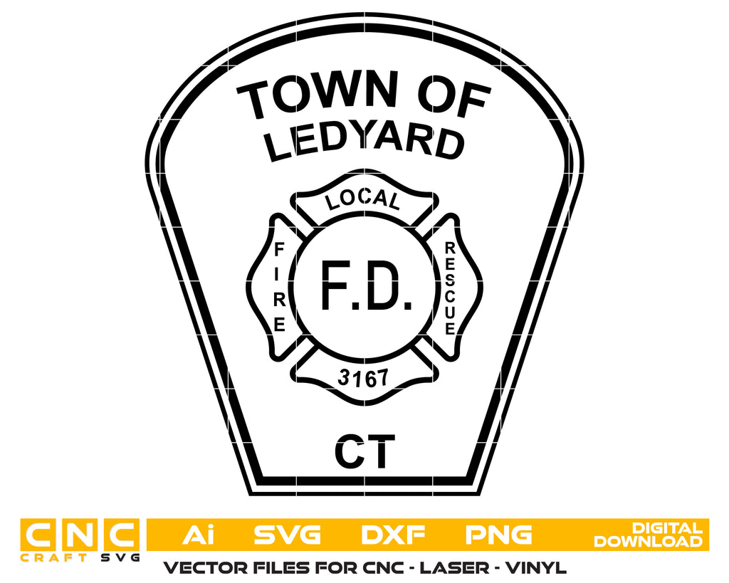 Honor the dedication and service of Connecticut’s fire and rescue professionals with this Town of Ledyard Fire Rescue Patch SVG — a crisp, high-quality vector design inspired by the official department patch. Perfect for crafting, apparel, engraving, décor, and commemorative artwork.