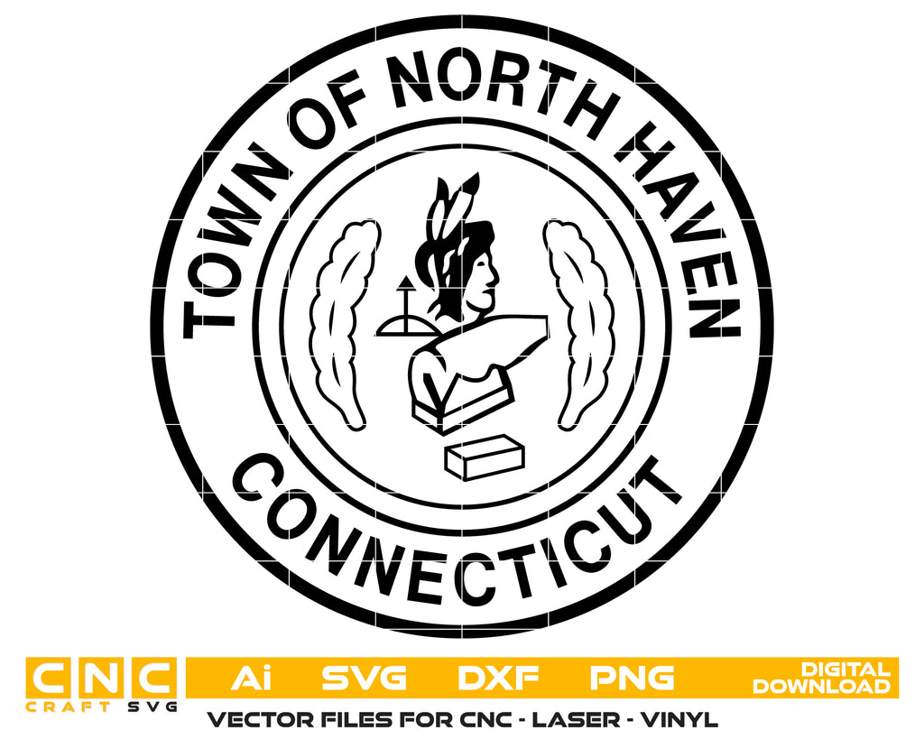 Represent the heritage of North Haven with this Town Seal SVG, perfect for official documents, signage, and display projects. This vector emblem provides highly detailed, scalable lines for CNC cutting, laser engraving, vinyl decals, plaques, and apparel. Ideal for town offices, designers, and collectors, it captures the official identity and civic pride of North Haven, Connecticut, offering versatile use across metal, wood, acrylic, leather, and fabric.