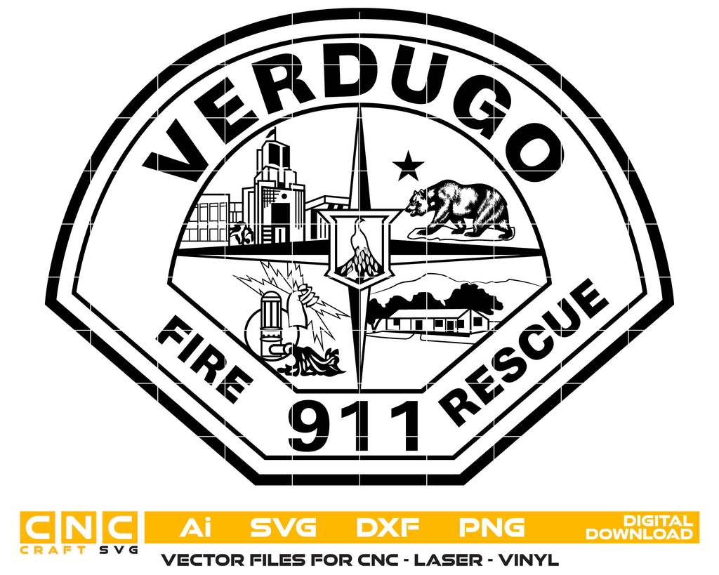 Download a high-quality Verdugo Fire Rescue Badge SVG crafted for precision and scalability. This detailed vector design perfectly captures the official badge layout, ideal for engraving, CNC cutting, laser etching, decals, apparel printing, and graphic projects.