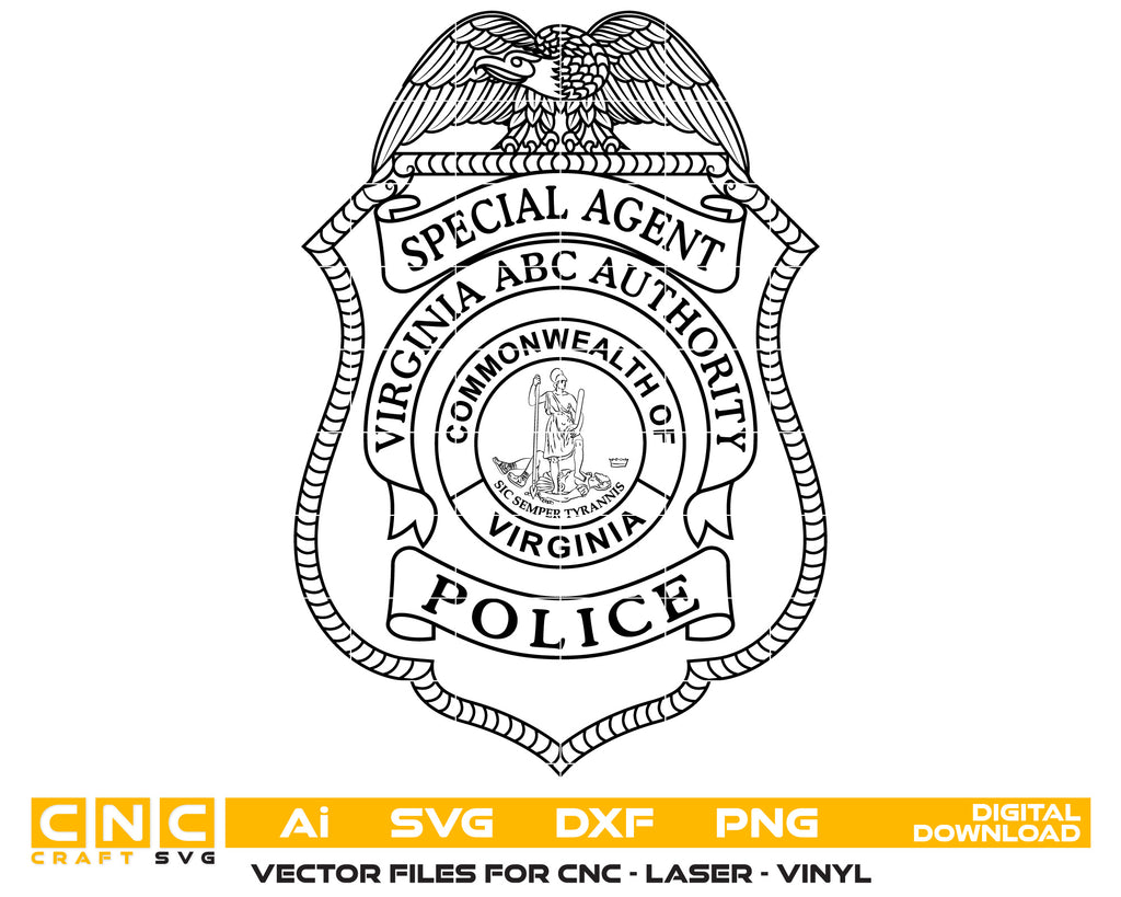 Create professional-quality law enforcement designs with this Virginia Police Special Agent Badge SVG, a clean and detailed vector badge inspired by Virginia state police special agents. Designed for accuracy and clarity, this badge artwork is ideal for high-quality cutting, engraving, and printing applications. Perfect for plaques, decals, uniforms, signage, and collectible police badges.