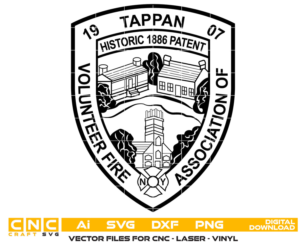 Honor the dedication and service of volunteer firefighters with this Volunteer Fire Association of Tappan Patch SVG — a crisp, high-quality vector design perfect for crafting, printing, engraving, and tribute projects.