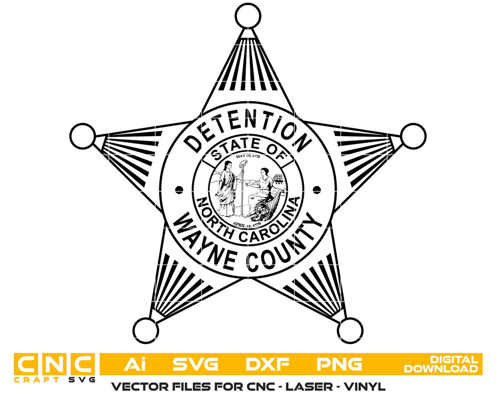 Crafted for accuracy and clarity, this Wayne County Detention badge vector maintains crisp edges and fine details at any size — ensuring flawless results for engraving, printing, and digital use.