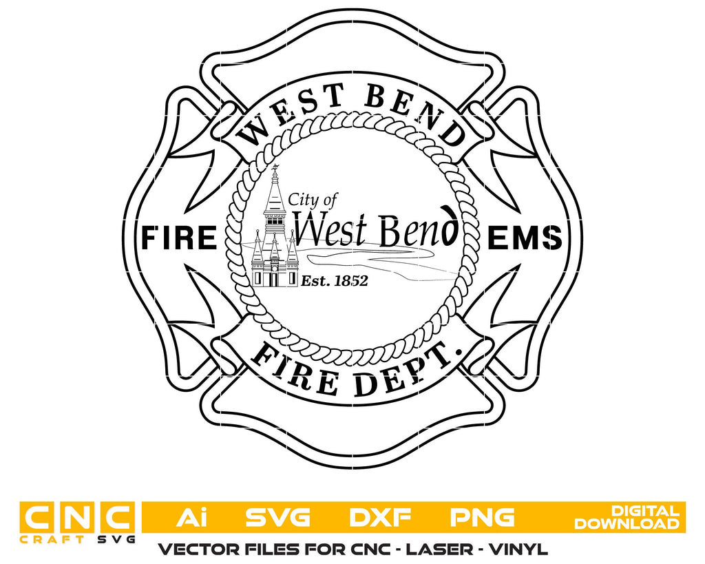 Download a high-quality West Bend Fire Department Patch SVG featuring precise vector detailing, clean embroidered-style lines, and fully scalable artwork. This professional fire department patch design is perfect for CNC cutting, laser engraving, Cricut, Silhouette, vinyl decals, apparel printing, signage, plaques, firefighter collectibles, and digital design projects.