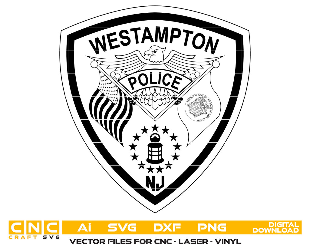 Create professional-quality law enforcement designs with this Westampton Township Police Department Patch SVG, a clean and detailed vector patch inspired by the Westampton Township Police Department in New Jersey. Designed for accuracy and clarity, this patch artwork is ideal for high-quality cutting, engraving, and printing applications. Perfect for plaques, decals, uniforms, signage, and collectible police patches.