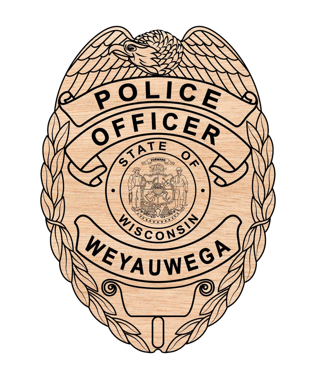 Crafted for accuracy and clarity, this Weyauwega, Wisconsin Police officer badge vector maintains crisp edges and fine details at any size—ensuring flawless results for engraving, printing, and digital use.