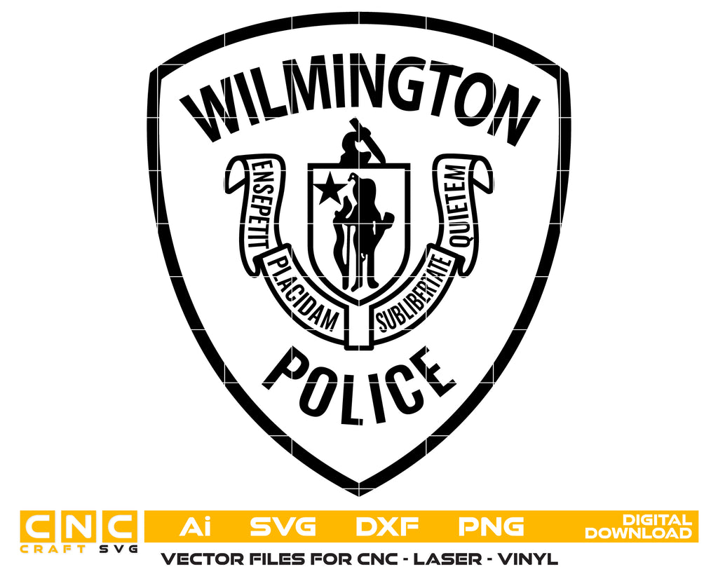 Honor the professionalism, service, and commitment of law enforcement with this Wilmington Police Badge SVG — a crisp, high-quality vector design perfect for crafting, printing, engraving, and tribute artwork.